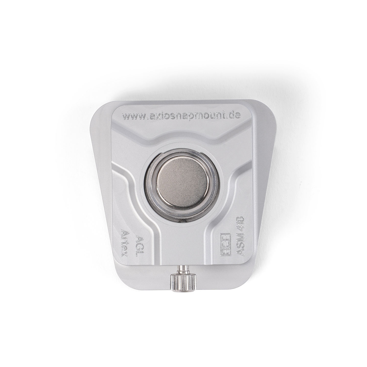 Auf der Oberseite befindet sich eine Aussparung zur Befestigung für normale oder starke Magnettöpfe mit einer Befestigungschraube. Mit der magnetischen Befestigung ist es möglich, gedruckte Modelle mit ASM-Montageplatten zu befestigen.